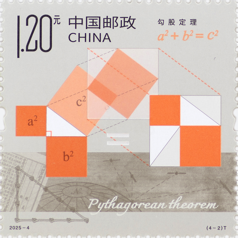 中國郵政定于2025年3月14日發行《數學之美》特種郵票1套4枚,郵票圖案名稱為:圓周率、勾股定理、歐拉公式、莫比烏斯帶。全套郵票面值4.70元。郵票計劃發行數量為套票625萬套,版式二80萬版。