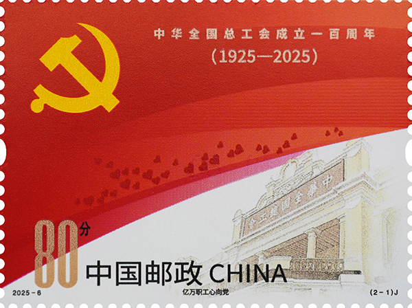 中國郵政定于2025年5月1日發(fā)行《中華全國總工會(huì)成立一百周年》紀(jì)念郵票1套2枚,郵票圖案名稱為:億萬職工心向黨、團(tuán)結(jié)奮斗新征程。全套郵票面值2.00元,計(jì)劃發(fā)行數(shù)量570萬套。
